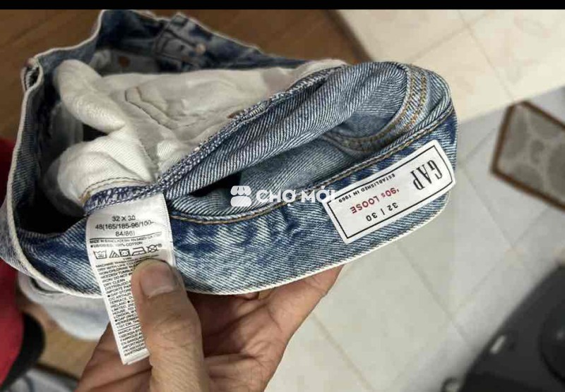 Quần jean GAP 90s Loose màu xanh nhạt, chất liệu denim bền đẹp. - Thiết kế ống rộng thoải mái, phong cách cổ điển. - Size 32 x 30, phù hợp cho nam. - Dễ phối đồ, tạo vẻ ngoài năng động.