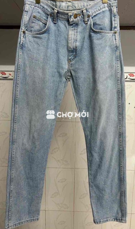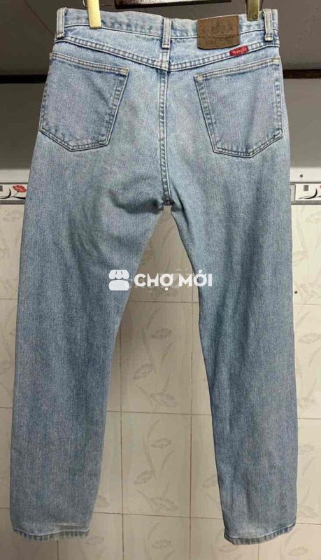 Quần jean Wrangler màu xanh nhạt, chất liệu vải bò bền đẹp, - Thiết kế trẻ trung, dễ phối đồ. - Chất vải mềm mại, thoải mái khi mặc. - Phù hợp đi chơi, đi làm. Eo 80 82 Chuyển e bao ship