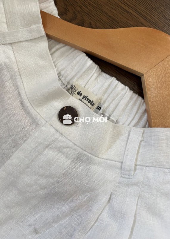 Mình cần PASS quần short linen trắng hiệu De Pivoine; size S (dài 38, eo 66 có bo chun lưng phía sau); chưa mặc; giá pass 149k.