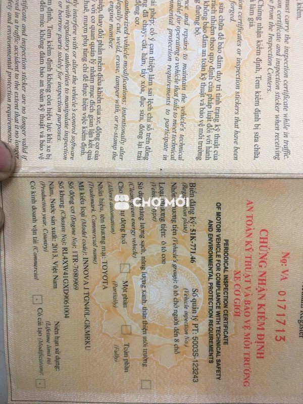 Toyota Innova 2013 mt j - 123456 km