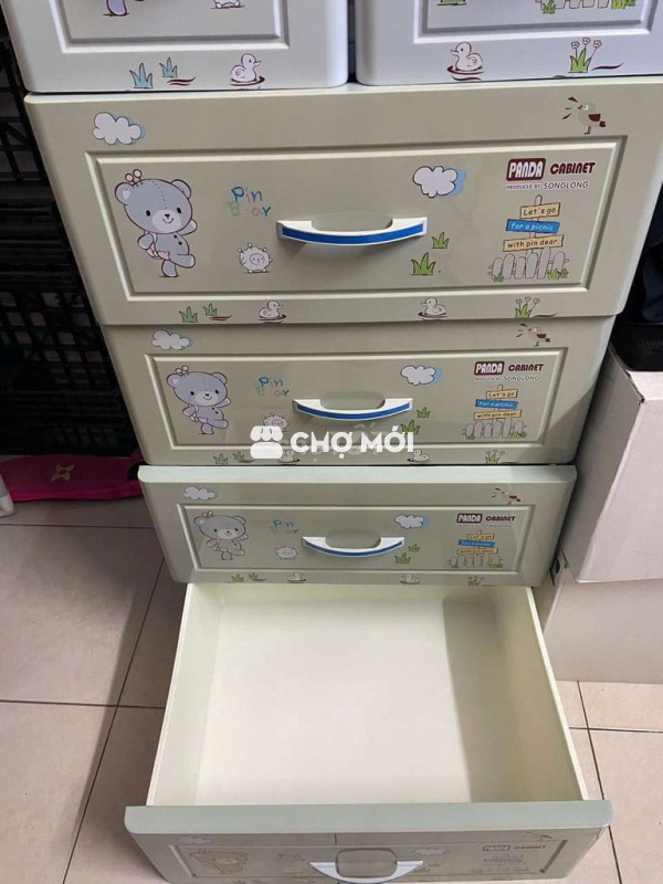 Tủ nhựa Panda Cabinet Songlong màu xám nhạt, thiết kế 5 tầng 6 ngăn tiện lợi. - Chất liệu nhựa bền, an toàn cho trẻ em. - Dễ dàng sắp xếp đồ dùng, quần áo gọn gàng. - Phù hợp cho phòng của bé. Cực sạch, cực thơm và đẹp ạ.