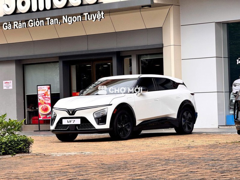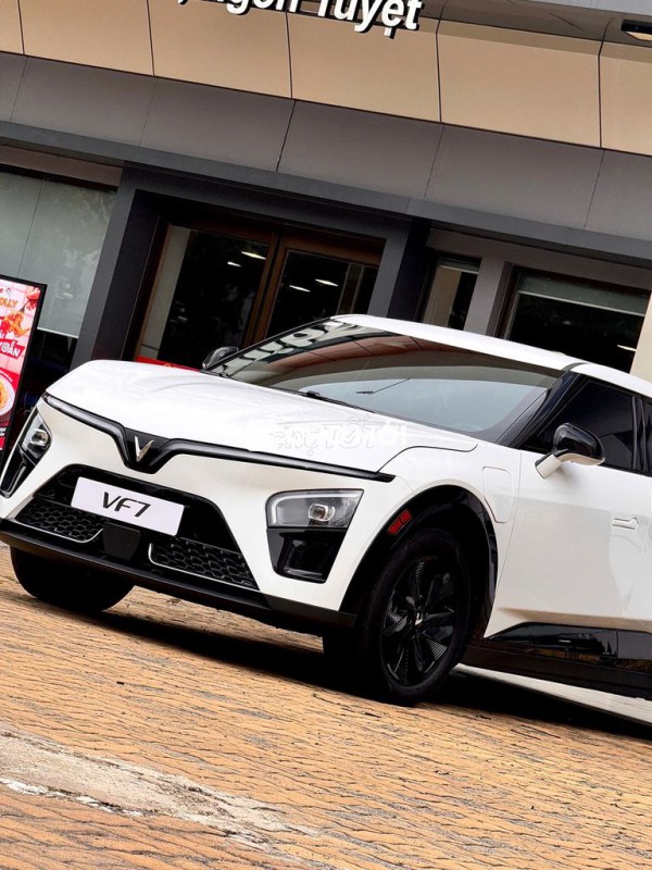 VinFast VF 7 màu trắng, dòng ô tô điện hiện đại, thiết kế cá tính, nội thất tiện nghi.