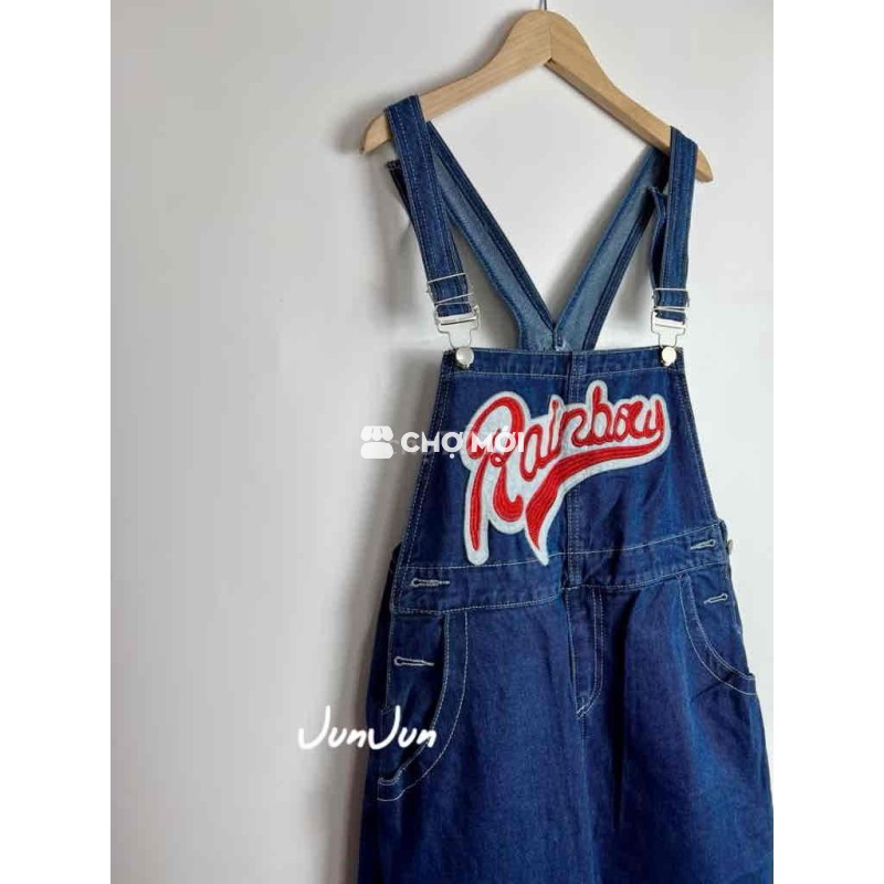 Yếm quần xanh phối chữ đỏ thời trang dễ phối